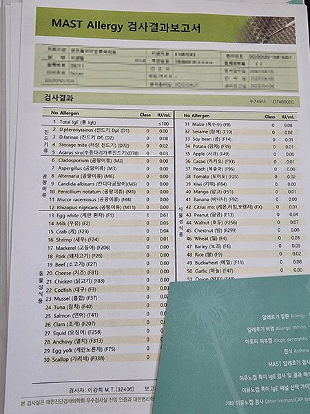 4. 알레르기 검사 (MAST 검사)