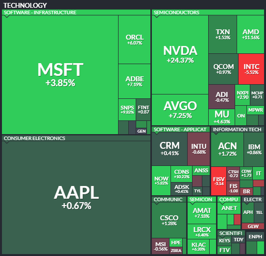 엔비디아와 메타(페이스북)가 S&P 500과 나스닥 100 모두 전 종목을 주도하고 있어, 올해 들어 현재까지 주가가 두 배 이상 상승했습니다.