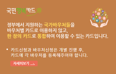 체크카드, 신용카드, 전용카드(기명식 선불카드와 유사한 형태) 방식의 국민행복카드 사용방식과 고지서를 통한 자동요금 차감 방식으로 지원합니다.