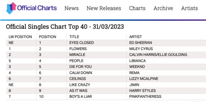 또한 지민은 한국시간으로 4월 1일 새벽 빌보드와 함께 양대 팝 차트로 꼽히는 영국 오피셜차트의 톱100에 8위로 진입하여 K팝 솔로 가수 최고 데뷔 신기록을 세우기도 했습니다.